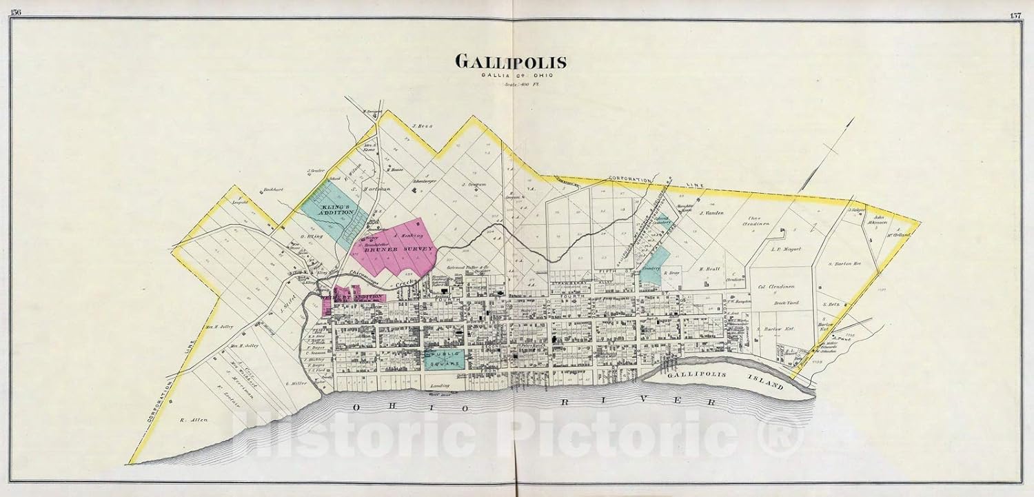 Amazon Com Historic Map Gallipolis Ohio Ohio 1877 Gallipolis Gallia Co Ohio Vintage Wall Art 50in X 24in Posters Prints